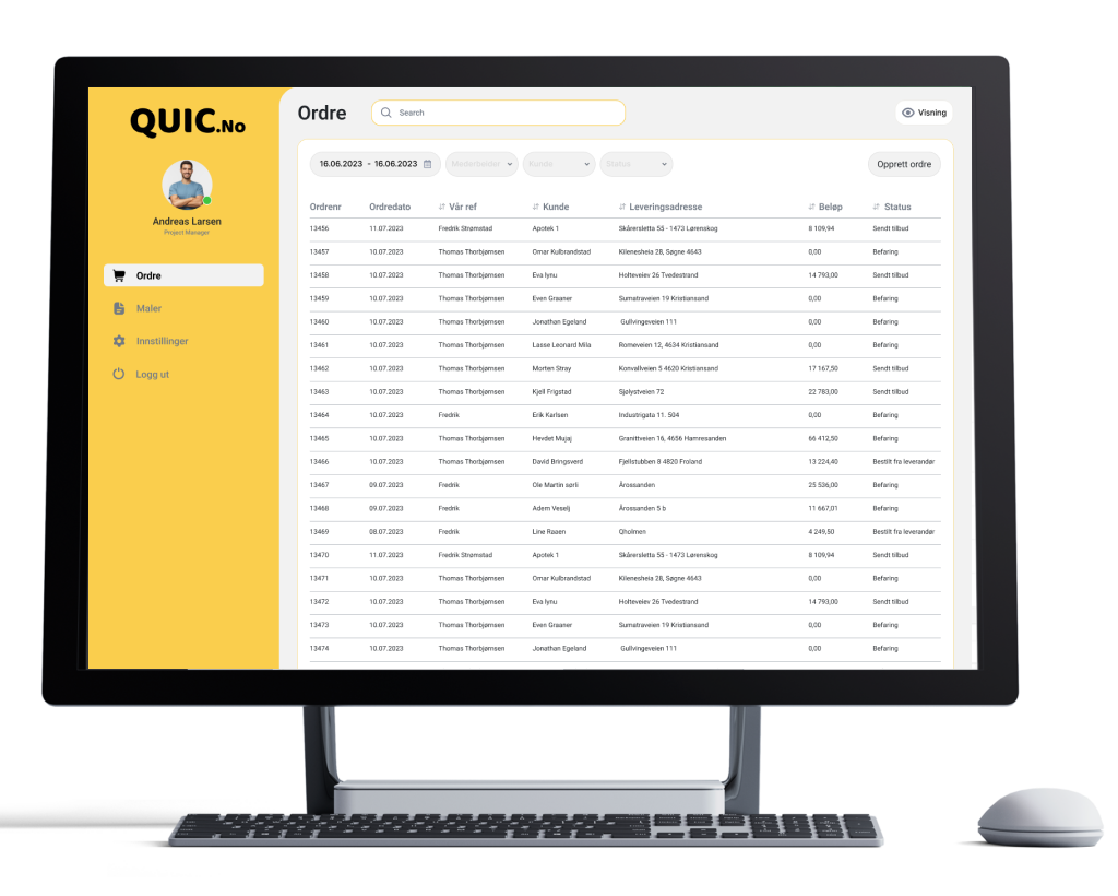 Slapp av, det kan vi hjelpe deg med. Ved å bruke Quic ordresystem vil du alltid ha kontroll på status på dine ordre. Se ordre info, bilder, dokumenter, tilbud, info osv som er sendt til din kunde hent fra A til Å.